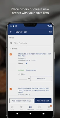 • Find products • View real-time price and availability • View active shipments • Place orders and track their status • Create lists of frequently ordered products • Find your local branch • Scan UPC barcodes • Quickly create orders using the quick scan • Register for an account