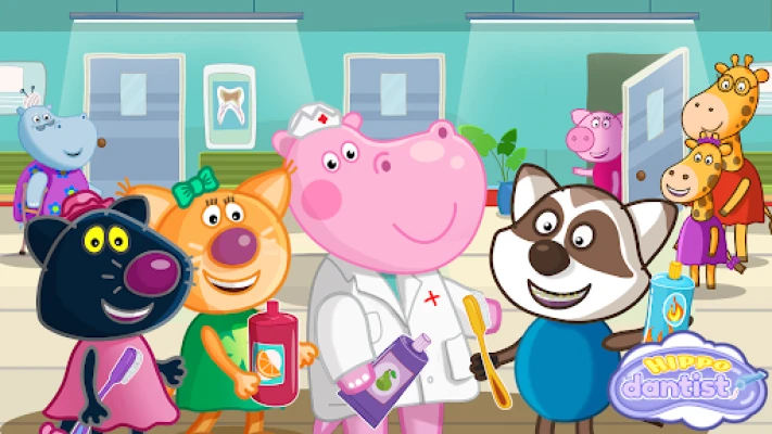 Everybody likes when people smile to each other. Smiles make us happy. Person need to take care of teeth regularly, to make our smiles beautiful. You need to brush teeth few times a day. When your teeth get ill, you need to visit a special doctor. Dentist takes care of teeth. Today our beloved Hippy will get to know with you what tasks has dentist every day. Kids Hippo hospital is open to everybody! Let’s meet adventures. Our kids hospital is waiting for its dentist. It waits for you!