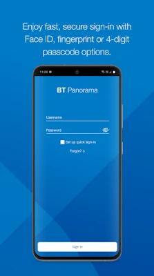 Signing in to the app is fast and secure with Face ID, 4-digit passcode or fingerprint technology², or you can use your Panorama username and password.