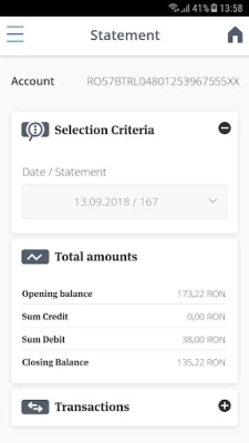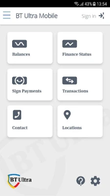 - fast and safe access to the company’s accounts - payments authorization or payments files initiated via the other applications related to BT Ultra - real-time display of statements, transactions and balances - access to information regarding the closest BT units or ATMs