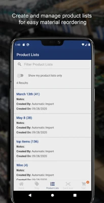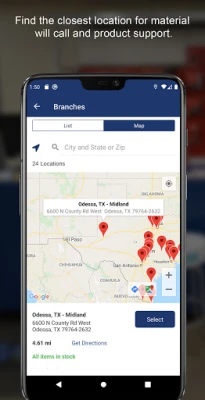 • Find products • View real-time price and availability • View active shipments • Place orders and track their status • Create lists of frequently ordered products • Find your local branch • Scan UPC barcodes • Quickly create orders using the quick scan • Register for an account