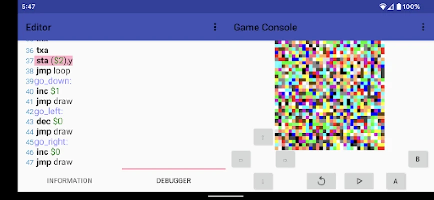 Ever be intimidated by assembly language? Try to pull your hair to figure out the obscure commands and memory manipulation? With this simple and elegant emulator, learning assembly language couldn't be easier. Don't believe it? Just try out the built-in examples and start from modifying, then creating. Use the debugger to see how each command affects the registers, memory and video output; Use the game console to play your games with on screen controllers.