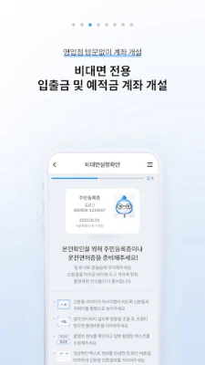 - 비대면 계좌 개설 : 개인사업자 고객 대상으로 비대면 전용 예적금 개설 기능 제공