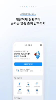 - 나의공과금 : 제세공과금 맞춤 조회 및 자동납부 등록 기능 제공