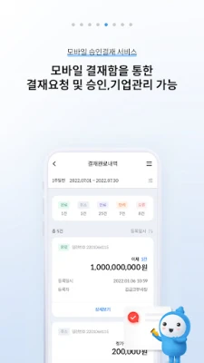 - 승인결재 : 다단계결재 이용 고객 대상으로 모바일 결재함 기능 제공