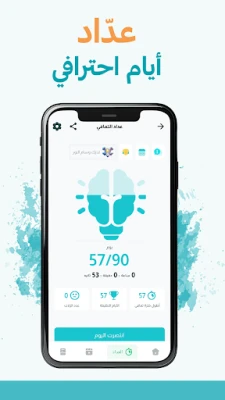 نسير معك بالتطبيق لحظة بلحظة من خلال أشكال متعددة وبألوان متنوعة من ثيمات العداد مما سيحفزك على التعافي مع إمكانية احتساب الزلات دون تصفير العداد!