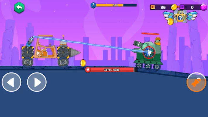 In each level, facing waves of enemy challenges, you will control your war vehicle and destroy opponents one by one. Each level is a dual test of the performance of the war vehicle and your operating skills. Only by successfully eliminating the specified number of enemies can you unlock the next stage of challenges.