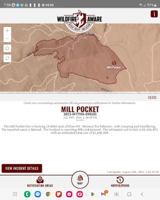 As fires burn for days or months, Wildfire Aware not only provides you notifications about perimeter updates but also provides authoritative supplemental agency data as well. Letting you know where the fire is. We source information from NIFC, IRWIN, InciWeb, CAL FIRE, US Forest Service (USFS), Bureau of Land Management (BLM), Department on Interior (DOI), and Texas A&M Forest Service, just to name a few.
